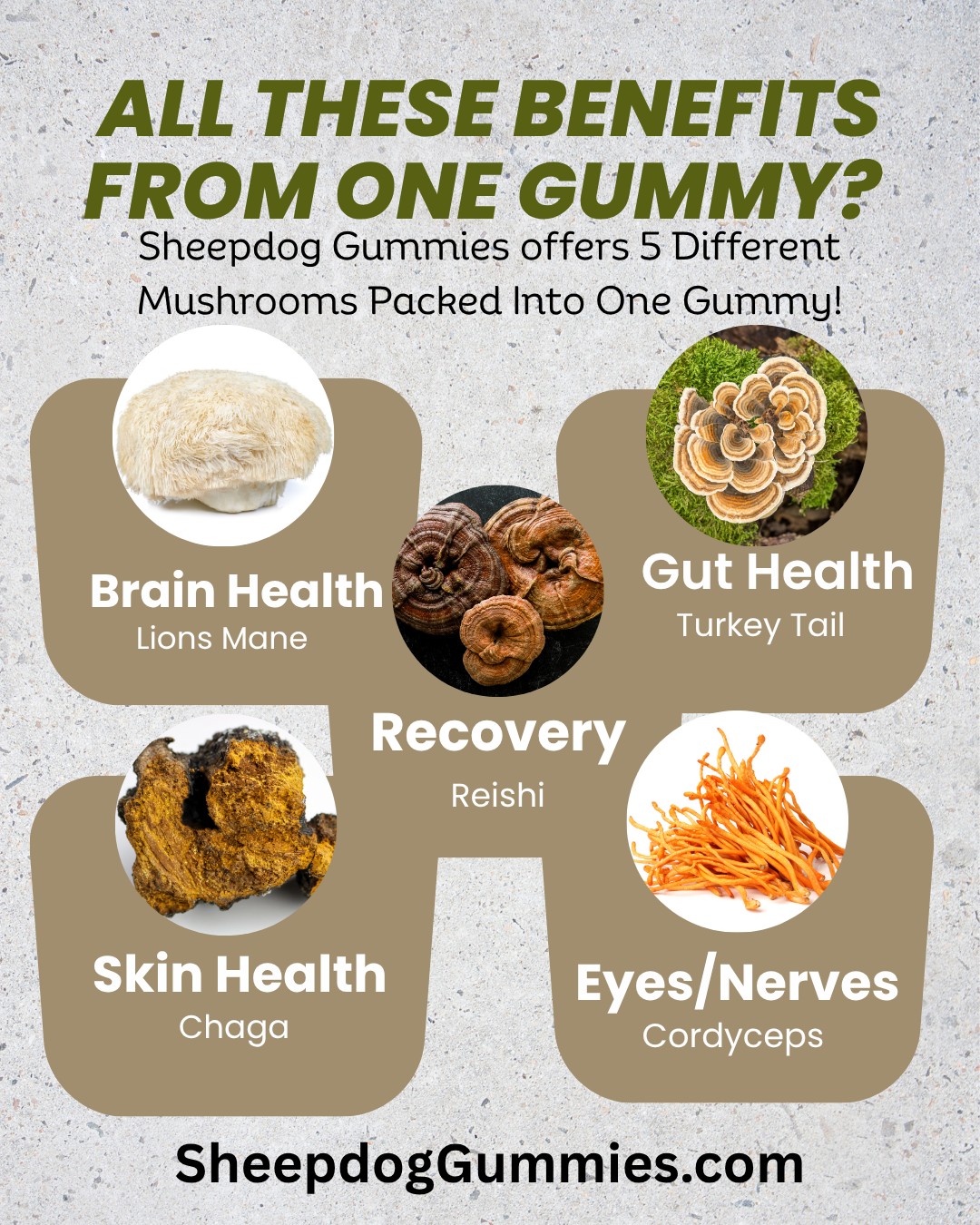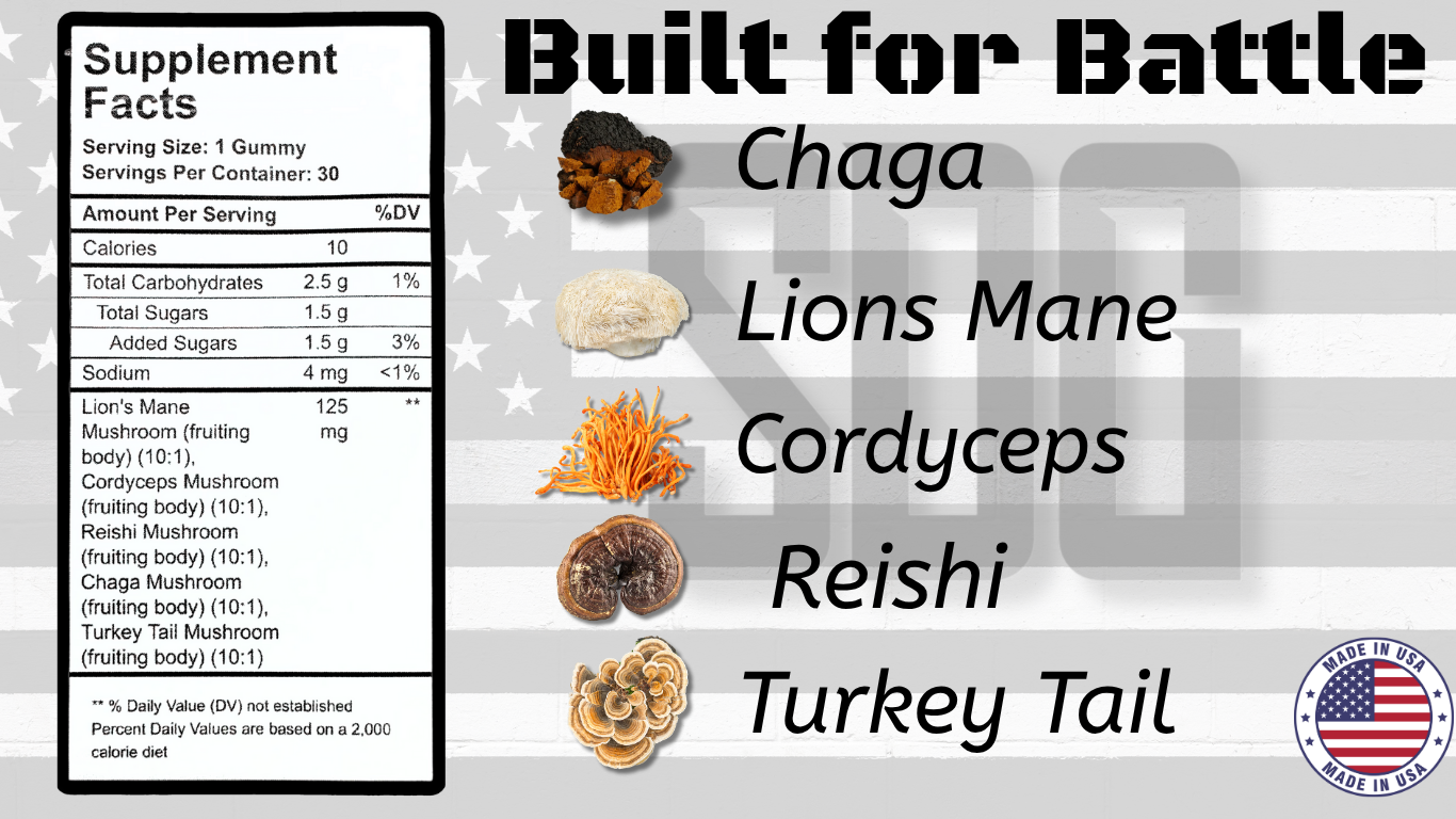 Discover the power of nature with our all-natural, vegan, non-GMO, and natural flavored gummies, featuring a potent five-mushroom blend: Lion’s Mane for focus, Chaga for resilience, Turkey Tail for immunity, Reishi for calmness, and Cordyceps for energy. Made with integrity by those who’ve served, every bite delivers pure, premium goodness—no artificial nonsense.